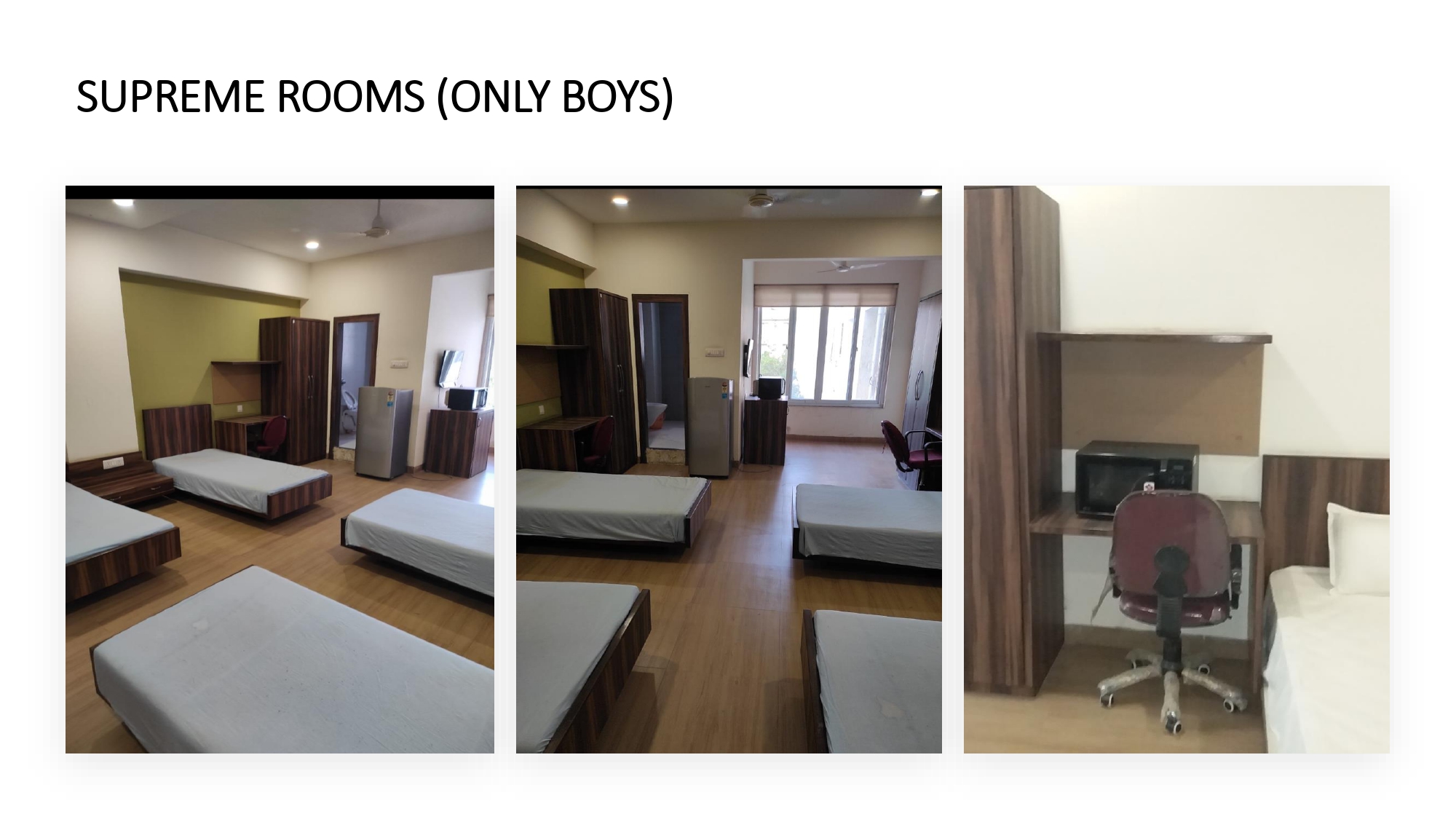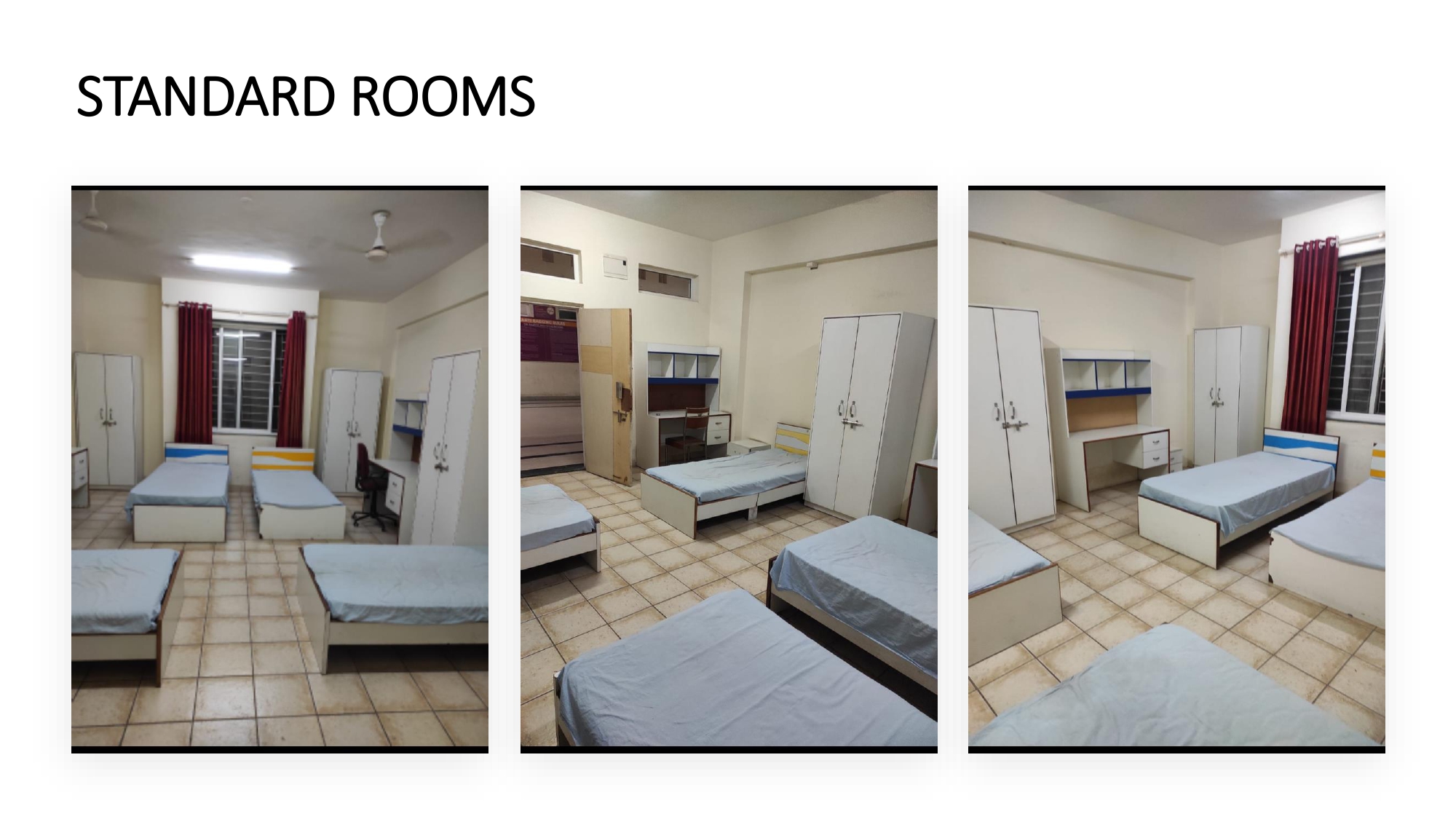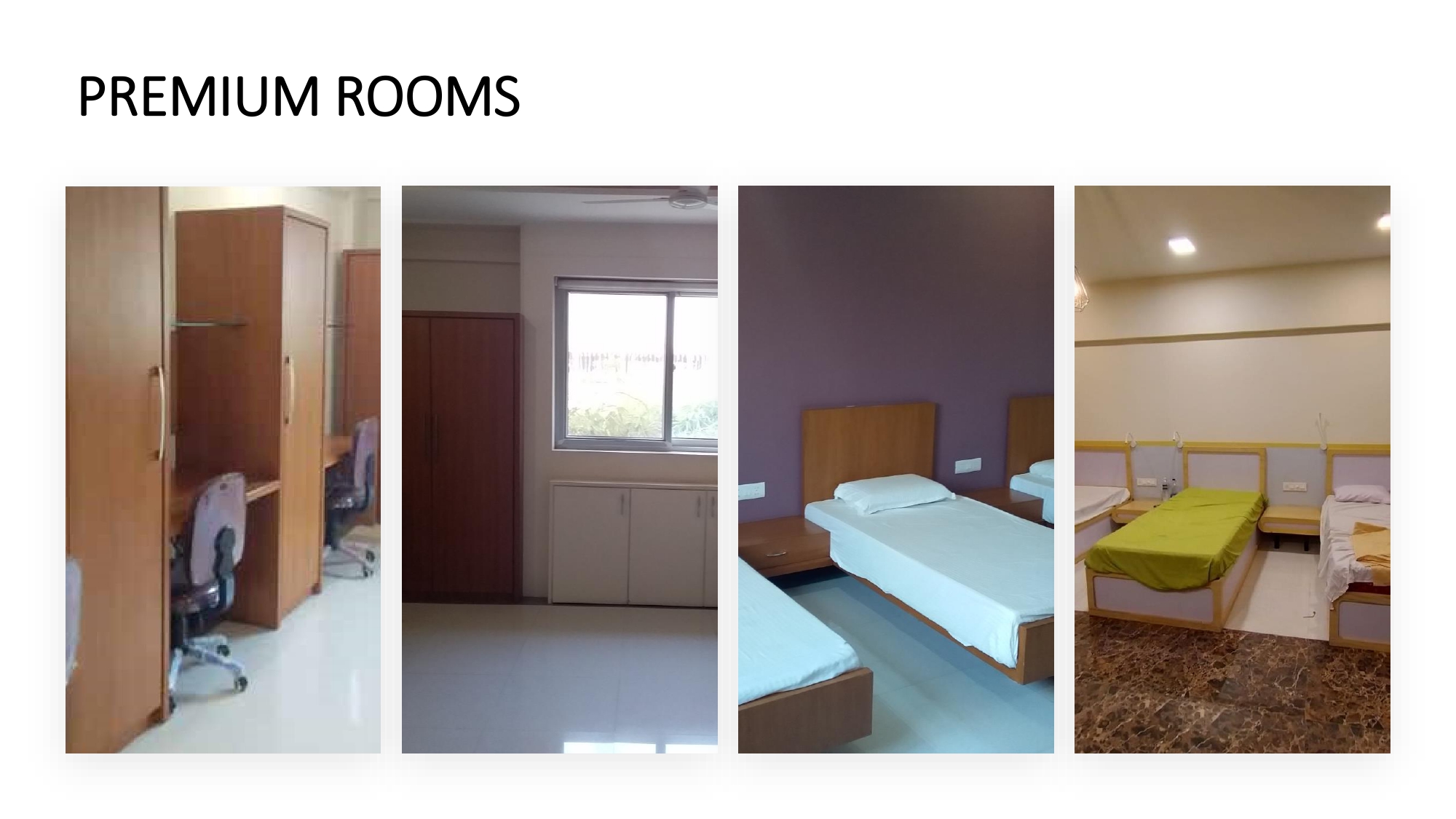 Four bed accommodation, attached washroom, AC. Modern furniture.